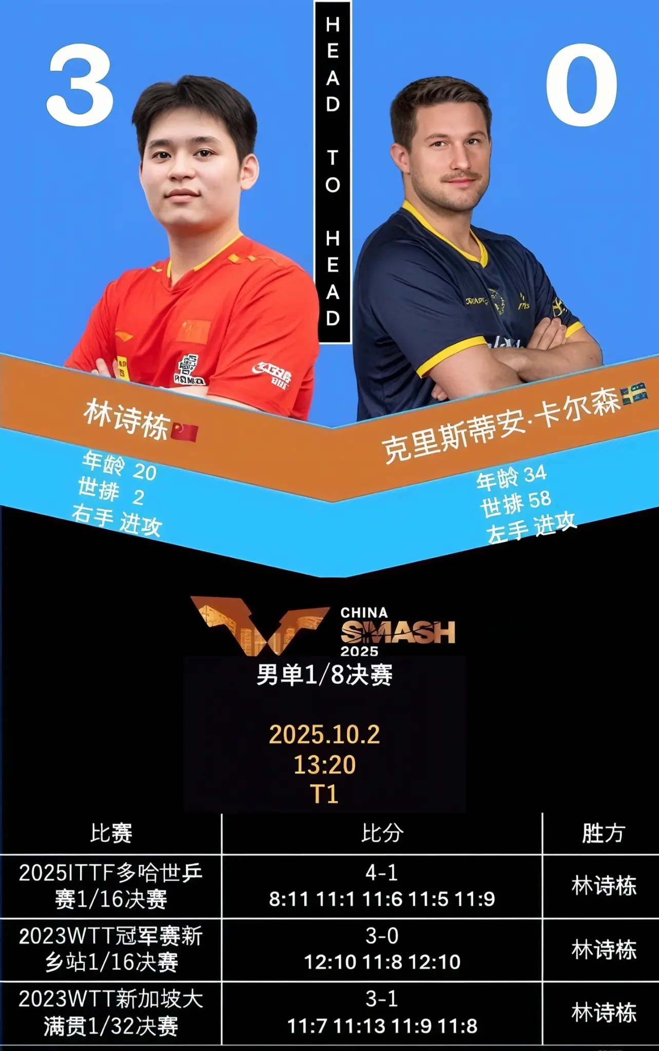 毕竟,林诗栋和卡尔森过往交手3次,林诗栋全胜,上风优势比较显著。